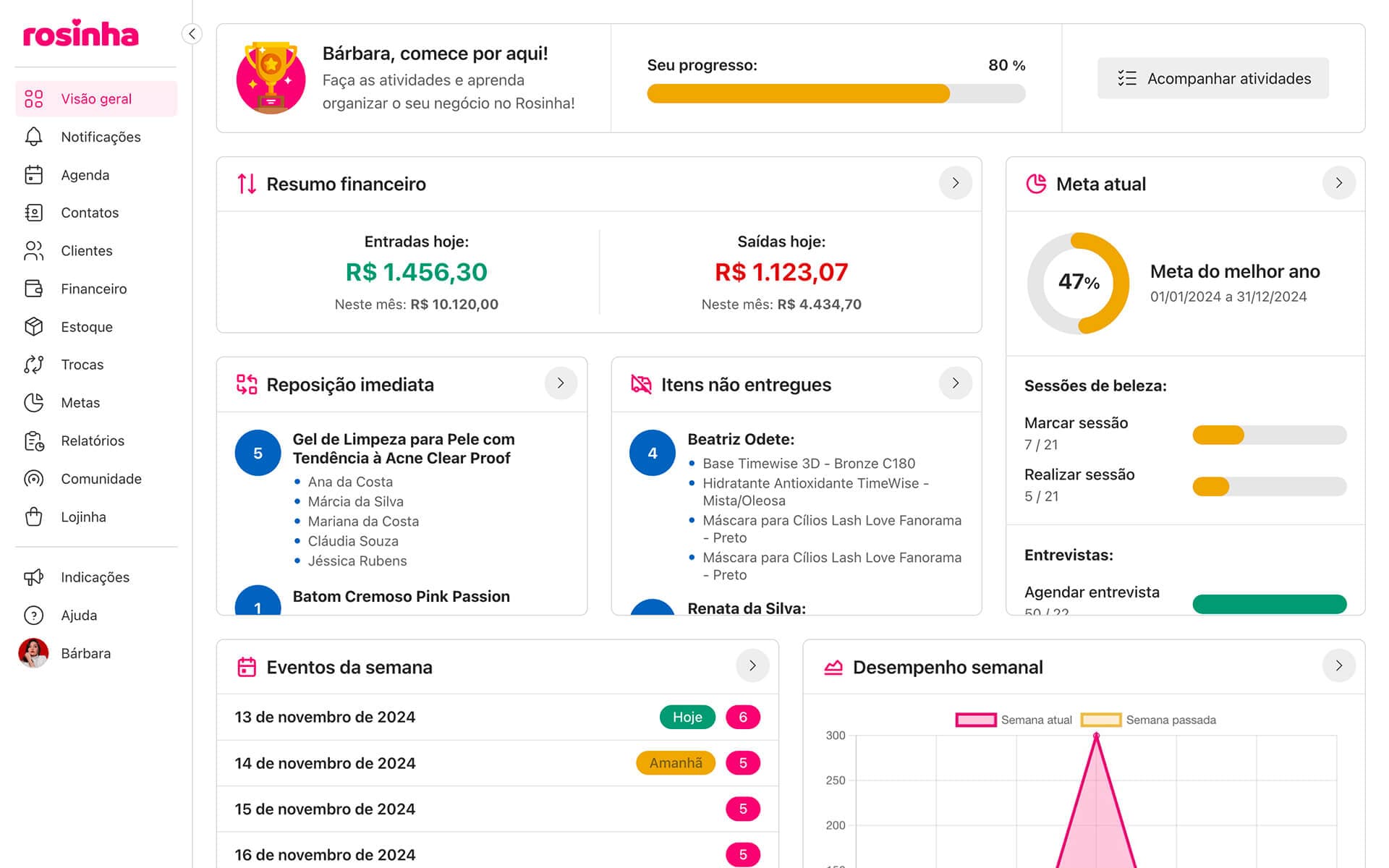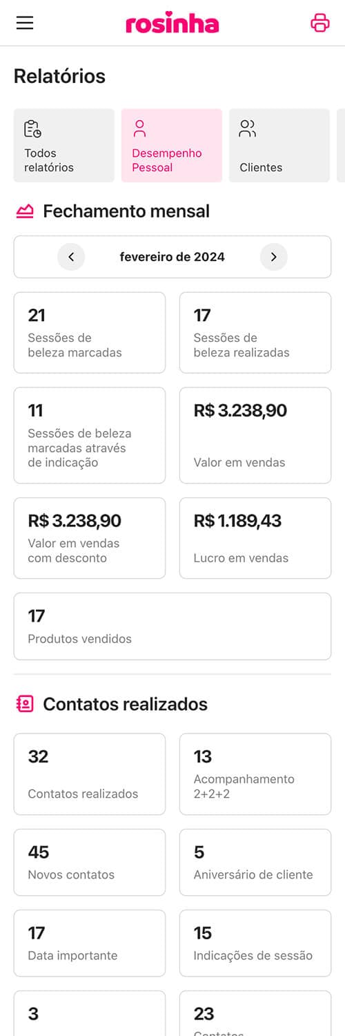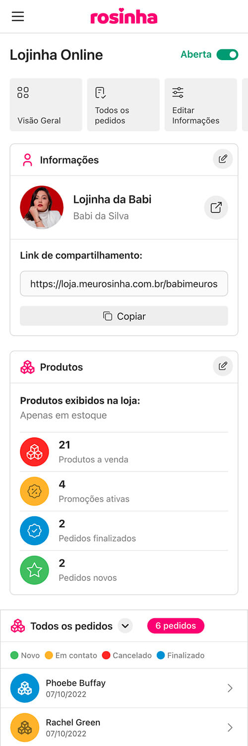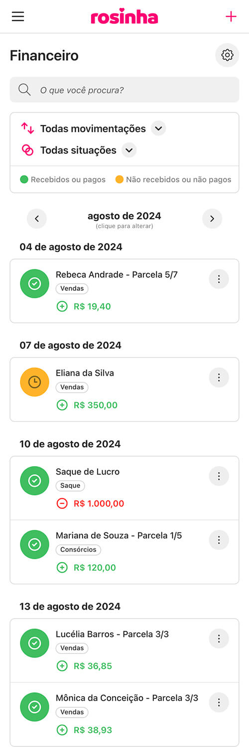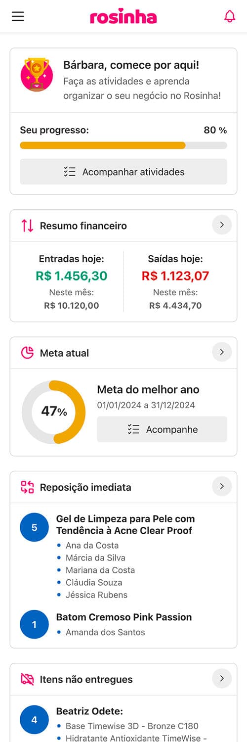 Com o Rosinha você organiza e centraliza todo o seu negócio em um só lugar, de forma simples e prática.