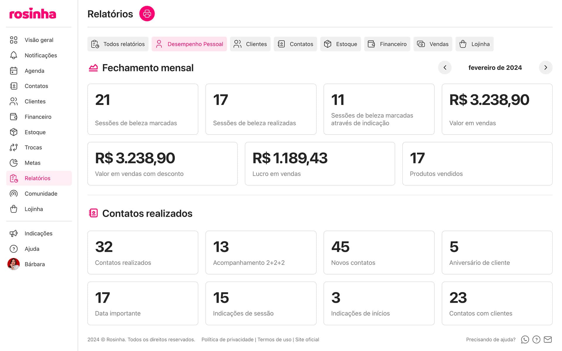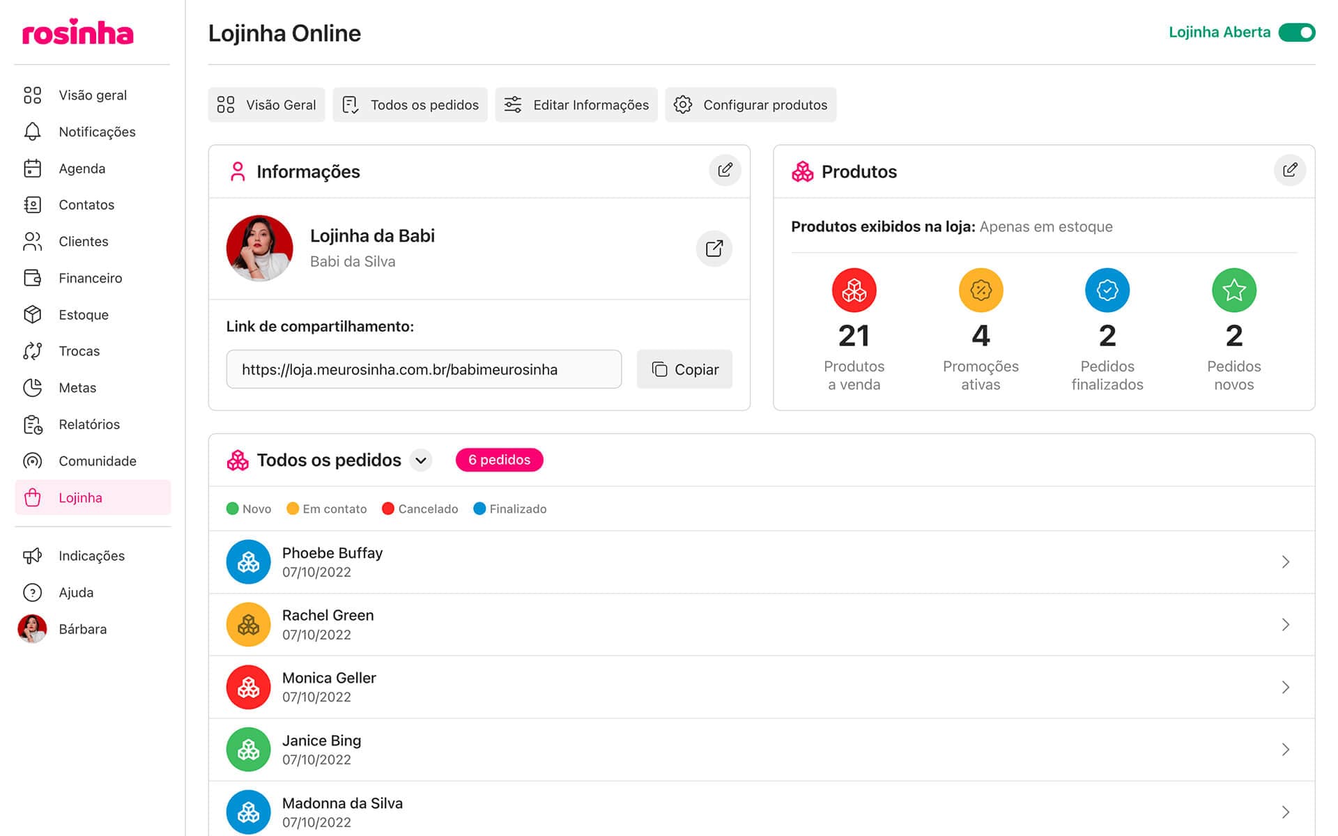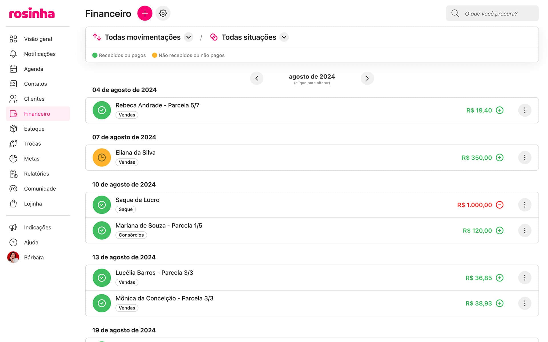 Com o Rosinha você organiza e centraliza todo o seu negócio em um só lugar, de forma simples e prática.