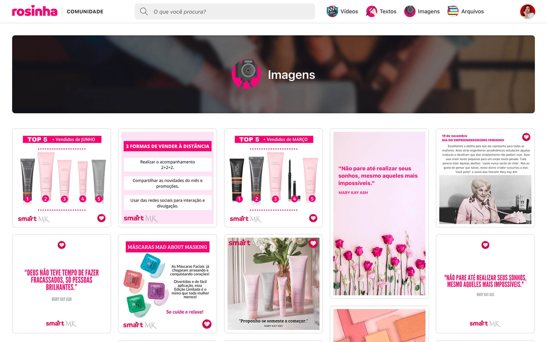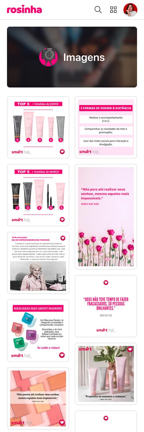 Posts sobre os produtos, frases motivacionais e stories para você baixar e postar nas suas redes sociais.