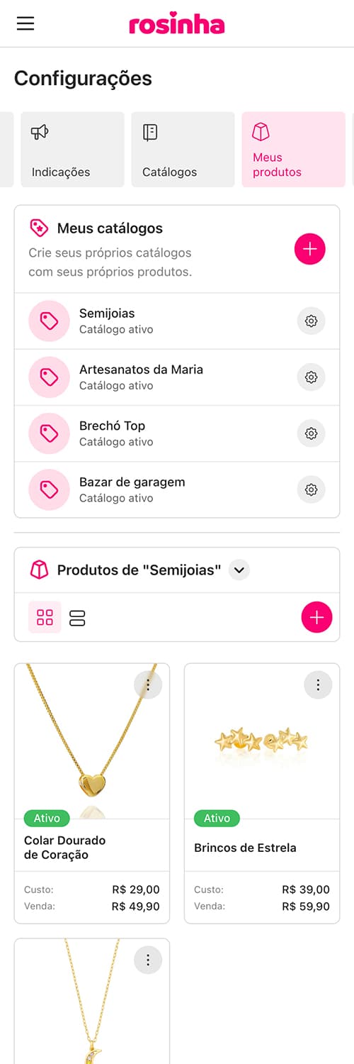 Na nossa ferramenta você encontra vários catálogos de produtos já cadastrados e atualizados, mas também é possível que você cadastre os seus próprios produtos!